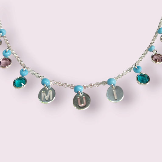 Choose a stamped disks, with one initial per disk - in uppercase Typerwriter font. All 925 Sterling Silver and 18ct Yellow Gold Plated onto Sterling Silver.